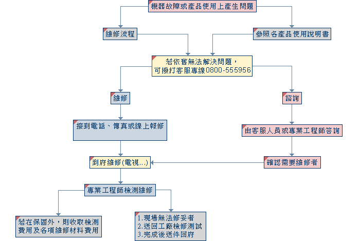 您曾因為家中電器故障,而無時間送至服務據點維修嗎?本公司為您推出到府收送服務,請您多加利用,解決您的困擾。