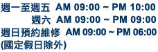 服務時間: AM9:00~PM9:00 (週一~週五)